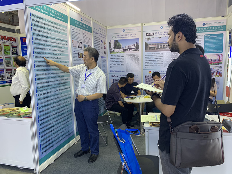 中國特種紙展臺吸引了來自越南、印度、迪拜、英國、伊朗、澳大利亞、柬埔寨、印尼、斯里蘭卡、中國及臺灣的幾十家特種紙生產(chǎn)商、經(jīng)銷商以及各地造紙行業(yè)協(xié)會人員等。本次考察活動,特種紙委員會首次對外展示了《中國特種紙企業(yè)及產(chǎn)品名錄(一)》。這本名錄匯編了國內(nèi)三十多家主要特種紙企業(yè)的基本信息,包括企業(yè)簡介、主要設(shè)備、主要產(chǎn)品、產(chǎn)能以及產(chǎn)品樣品等,吸引了世界各地的采購商前來咨詢。越南和印度造紙協(xié)會的秘書長參觀展臺時,特別翻閱了這本名錄,詳細(xì)地了解了中國特種紙企業(yè)及產(chǎn)品概況。印度造紙協(xié)會秘書長與特紙委劉秘書長口頭達(dá)成協(xié)議,他將在10月份帶領(lǐng)代表團(tuán)參加特紙委在浙江衢州市舉辦的特種紙技術(shù)交流年會和展會,屆時介紹印度造紙工業(yè)現(xiàn)狀。