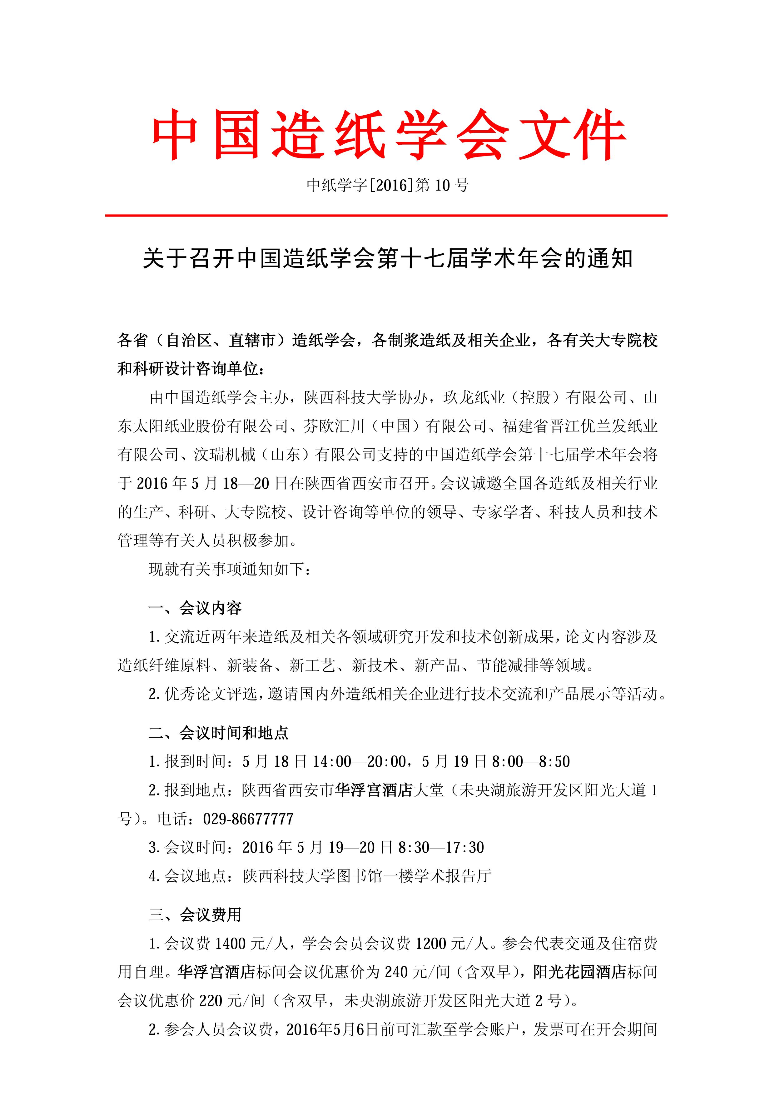 附件:關(guān)于召開中國造紙學(xué)會(huì)第十七屆學(xué)術(shù)年會(huì)的通知