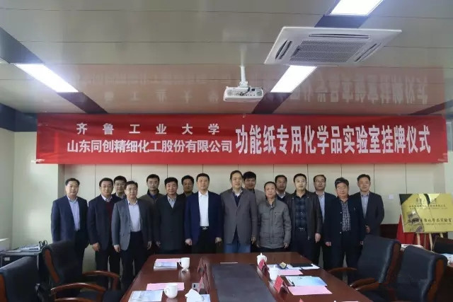 3月17日,齊魯工業(yè)大學(xué)與同創(chuàng)精細(xì)化工公司"功能紙專用化學(xué)品實(shí)驗(yàn)室"揭牌。齊魯工業(yè)大學(xué)校長陳嘉川,齊魯工業(yè)大學(xué)輕工學(xué)部黨委書記趙傳山,縣委副書記、縣長陳永生,縣委常委、常務(wù)副縣長陳海龍等出席活動(dòng)。