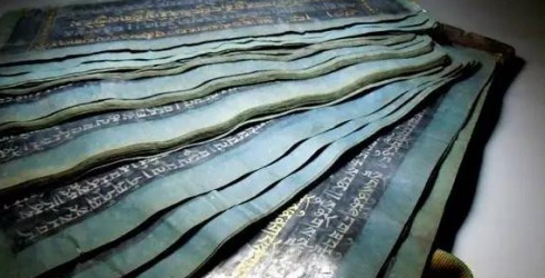 第二種則是以金銀泥書寫,紙張為深藍或黑色,例如故宮博物院所珍藏的清貝葉式泥金藏文《甘珠爾》、西藏布達拉宮的八寶七彩《丹珠爾》、明朝宣德貢箋羊腦箋以及磁青紙。