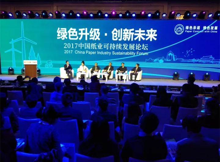11月2日,以“綠色升級(jí)·創(chuàng)新未來(lái)”為主題,由中國(guó)新聞社《中國(guó)新聞周刊》與APP(中國(guó))聯(lián)合主辦的“2017中國(guó)紙業(yè)可持續(xù)發(fā)展論壇”在京舉辦,今年是該論壇舉辦的第十年。工信部消費(fèi)品工業(yè)司司長(zhǎng)高延敏,環(huán)保部宣傳教育中心主任賈峰,國(guó)務(wù)院僑辦經(jīng)濟(jì)科技司司長(zhǎng)左志強(qiáng),中國(guó)新聞社副社長(zhǎng)、副總編輯、《中國(guó)新聞周刊》社長(zhǎng)夏春平,中國(guó)森林認(rèn)證委員會(huì)主任、原國(guó)家林業(yè)局科技發(fā)展中心常務(wù)副主任王偉,中國(guó)造紙協(xié)會(huì)理事長(zhǎng)趙偉,中國(guó)造紙學(xué)會(huì)秘書長(zhǎng)曹春昱,中國(guó)輕工業(yè)聯(lián)合會(huì)副秘書長(zhǎng)郭永新及APP(中國(guó))副總裁翟京麗等嘉賓出席并參與論壇,為造紙工業(yè)由高速發(fā)展向高質(zhì)量發(fā)展的戰(zhàn)略性轉(zhuǎn)變建言獻(xiàn)策。