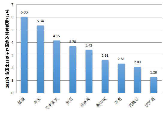 我國出口“一帶一路”沿線主要國家特種紙及紙板量/萬噸