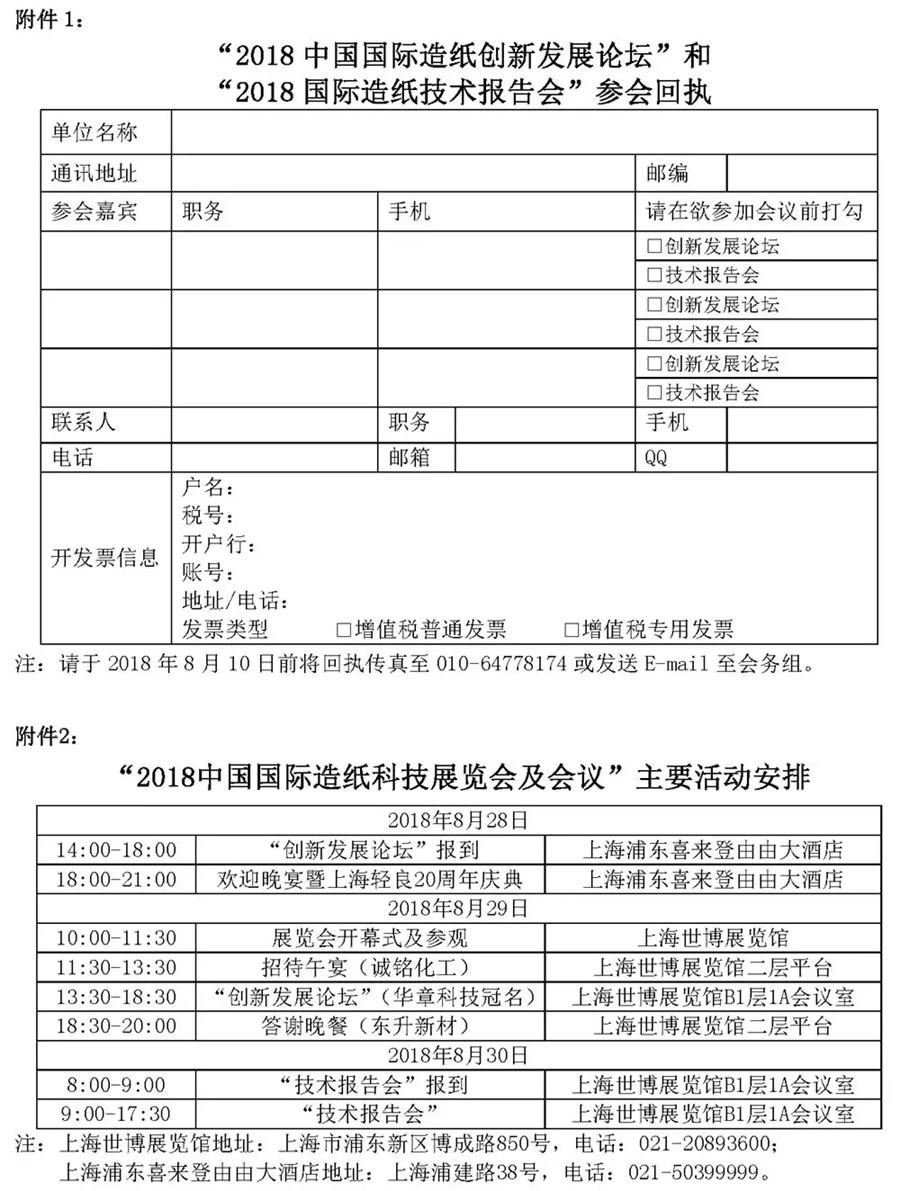 關于召開“2018中國國際造紙創(chuàng)新發(fā)展論壇”和“2018國際造紙技術報告會”的通知