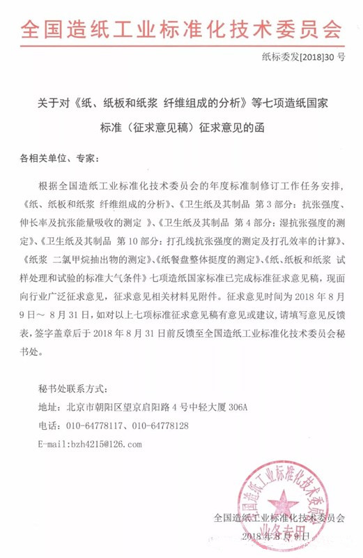 2018-08-15 全國(guó)造紙工業(yè)標(biāo)準(zhǔn)化技術(shù)委員會(huì)