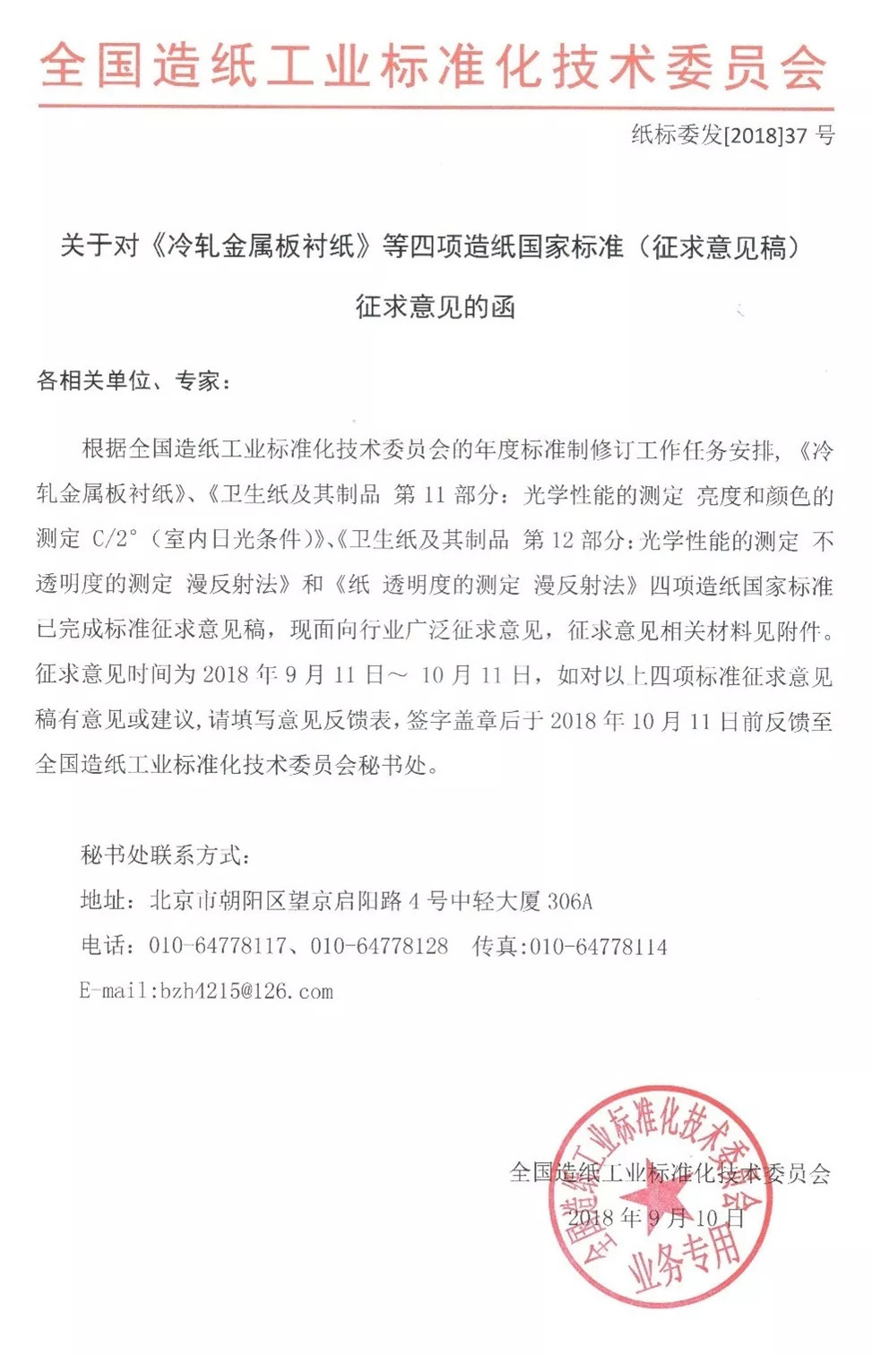 2018-09-12 全國(guó)造紙工業(yè)標(biāo)準(zhǔn)化技術(shù)委員會(huì)