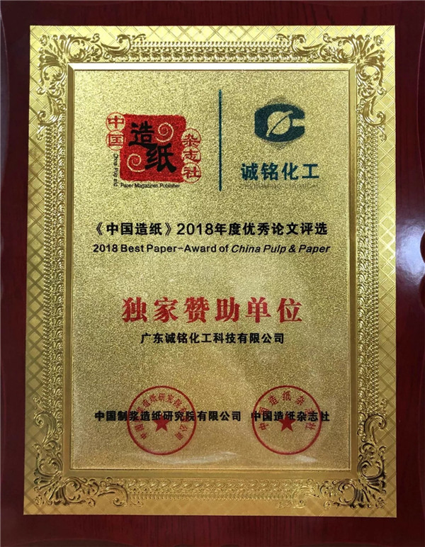 在廣東誠(chéng)銘化工科技有限公司的贊助下,中國(guó)造紙雜志社成功地舉辦了《中國(guó)造紙》2018年度“誠(chéng)銘化工杯”優(yōu)秀論文評(píng)選活動(dòng)。