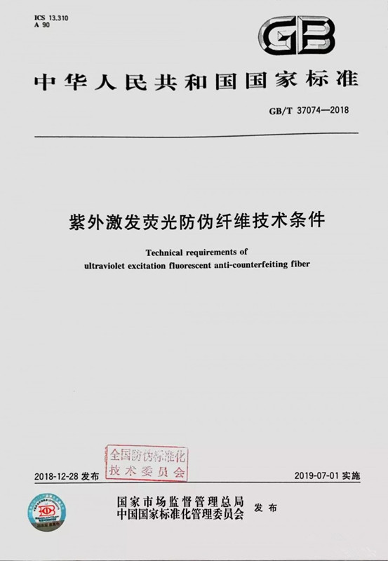防偽纖維技術(shù)是目前紙板防偽技術(shù)中心最核心的技術(shù)之一,但在GB/T 37074-2018《紫外激發(fā)熒光防偽纖維技術(shù)》發(fā)布之前,國(guó)內(nèi)在此項(xiàng)技術(shù)方面莫衷一是,難以評(píng)判,導(dǎo)致市場(chǎng)混亂。該項(xiàng)國(guó)標(biāo)的發(fā)布不僅規(guī)范了防偽彩纖的技術(shù)要求,而且對(duì)造紙行業(yè)在防偽技術(shù)方面的發(fā)展指明了一個(gè)方向。