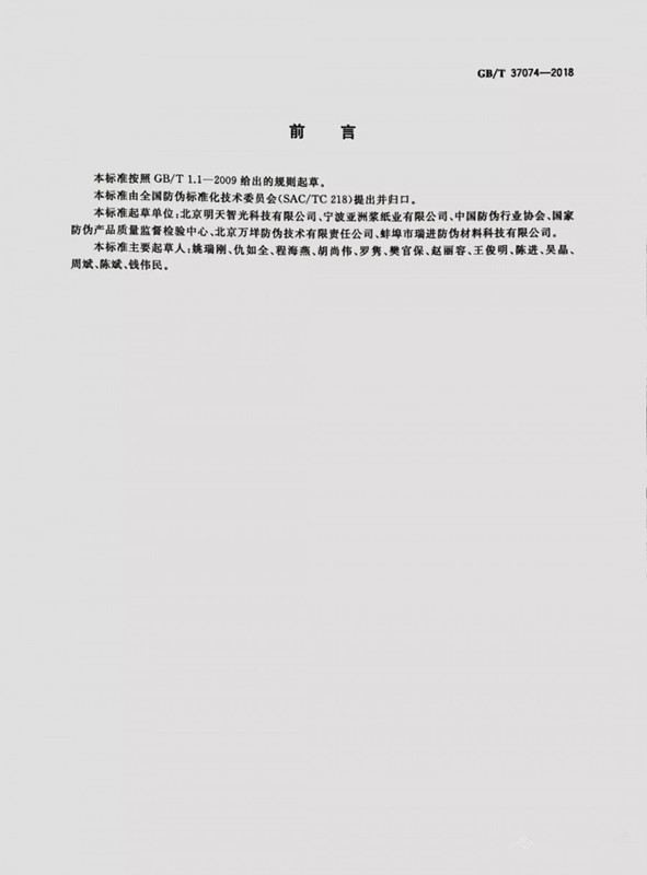 寧波亞洲漿紙業(yè)有限公司作為該項(xiàng)國(guó)標(biāo)第二起草單位,在GB/T3707-2018的起草、修訂過(guò)程中,始終積極參與,認(rèn)真、嚴(yán)肅對(duì)待每一細(xì)節(jié)問(wèn)題。工紙事業(yè)部技術(shù)副總仇如全作為該標(biāo)準(zhǔn)第二起草人,更是以其豐富的理論知識(shí)與實(shí)踐經(jīng)驗(yàn)為該國(guó)標(biāo)的制定提供了許多寶貴的建議和見(jiàn)解。該技術(shù)標(biāo)準(zhǔn)的發(fā)布,不僅在APP集團(tuán)發(fā)展史上具有里程碑式的意義,更是填補(bǔ)了中國(guó)國(guó)家標(biāo)準(zhǔn)在防偽標(biāo)準(zhǔn)化上的一道空白。