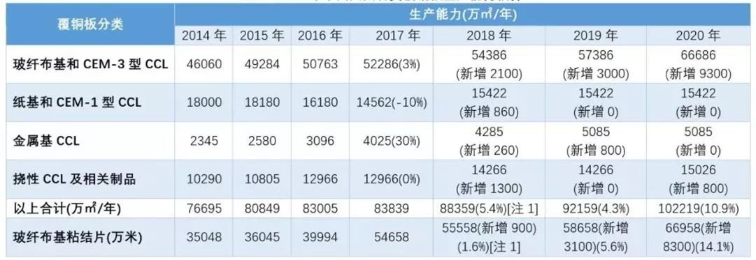 表1 2014-2020年我國各類覆銅板產(chǎn)能估算