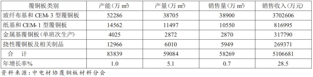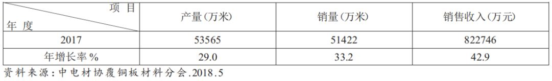 表2 2017年中國大陸各類覆銅板生產(chǎn)經(jīng)營情況