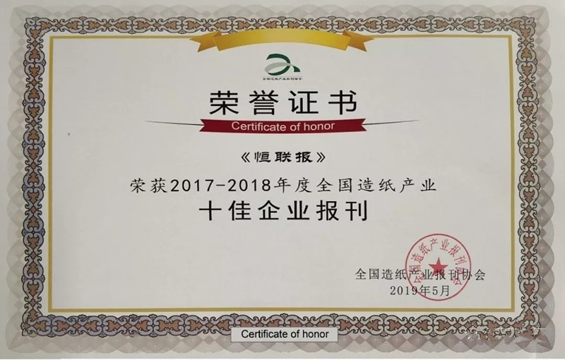 近日,第二十三屆全國造紙產(chǎn)業(yè)報刊協(xié)會年會在日照市成功舉行。會上,《恒聯(lián)報》繼2011年、2015年、2017年后第四次榮獲全國造紙產(chǎn)業(yè)“十佳企業(yè)報刊”稱號。