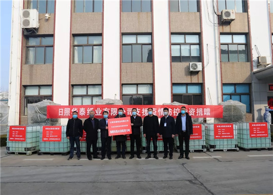 面對新型冠狀病毒肺炎疫情加快蔓延的嚴峻形勢,日照華泰紙業(yè)有限公司視疫情為命令,把防控當責任,全力以赴做好公司疫情防控工作的同時,進一步踐行社會擔當責任,2月9日,日照華泰紙業(yè)有限公司緊急調(diào)撥20噸濃度30%的雙氧水消毒液無償捐獻給周邊10個社區(qū)(村委),助力疫情防控工作,堅決打贏抗擊新型冠狀病毒防控戰(zhàn)役。同時為積極響應(yīng)中央抗擊新型冠狀病毒疫情的號召,主動擔當社會責任,2月11日,日照華泰紙業(yè)有限公司捐贈20萬元,助力公司所在地莒縣夏莊鎮(zhèn)黨委政府打贏防疫阻擊戰(zhàn)。夏莊鎮(zhèn)鎮(zhèn)長倫致杰、人大主席宋時生接受捐贈。日照華泰總經(jīng)理孫曰平、副總顧延興參加了捐贈儀式。
