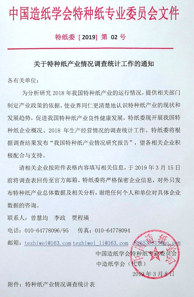 點(diǎn)擊下載關(guān)于特種紙產(chǎn)業(yè)情況調(diào)查統(tǒng)計(jì)工作的通知