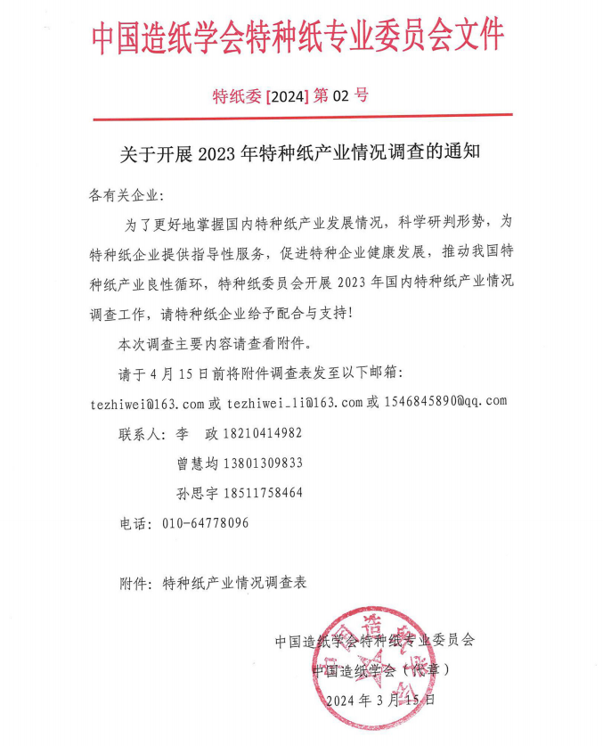點(diǎn)擊下方“特種紙產(chǎn)業(yè)情況調(diào)查表”鏈接,下載調(diào)查表