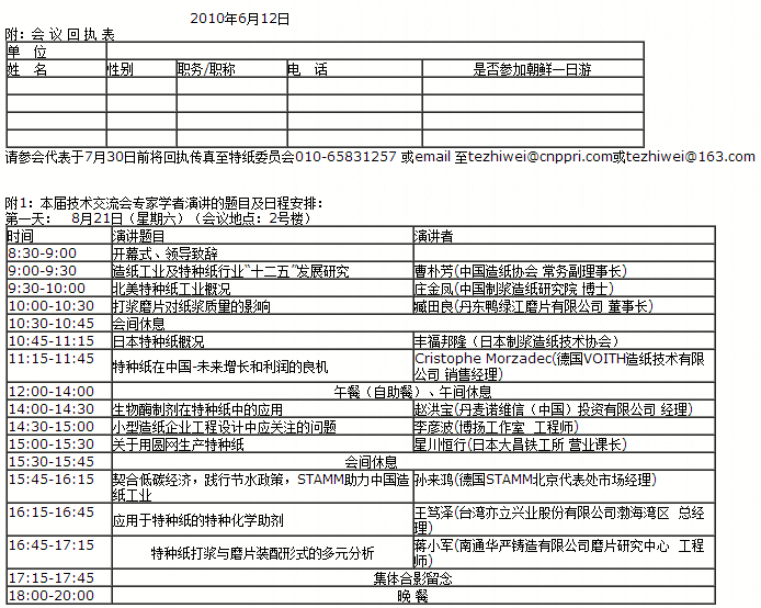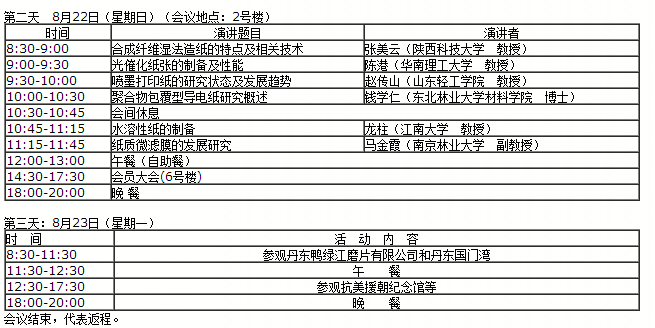 8月21日-23日特種紙技術交流會的日程表詳見附件1