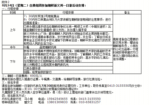 8月24日:朝鮮一日游(自費組團)(詳見附件2)