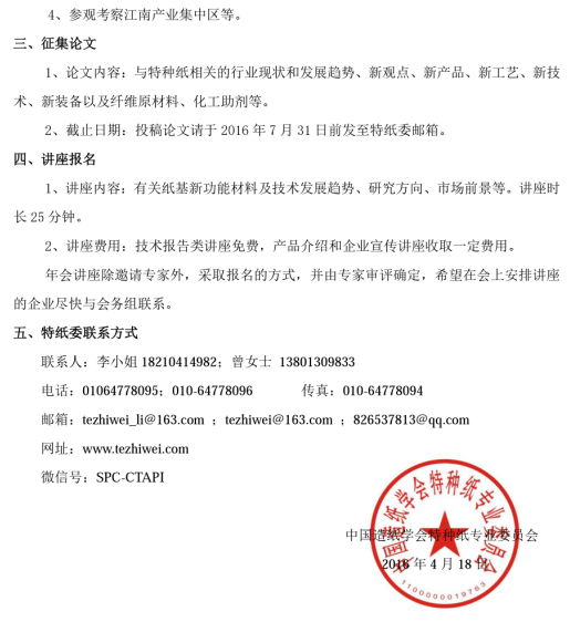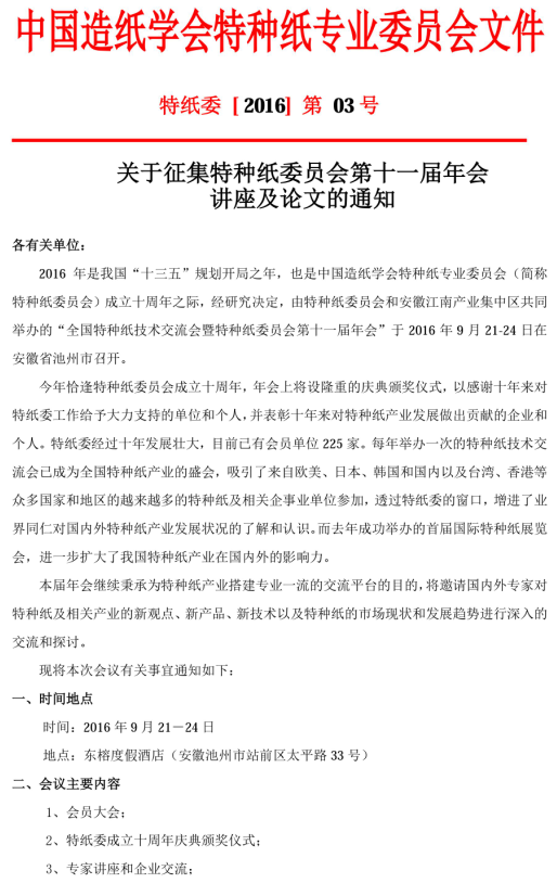 關于征集特種紙委員會第十一屆年會講座及論文的通知