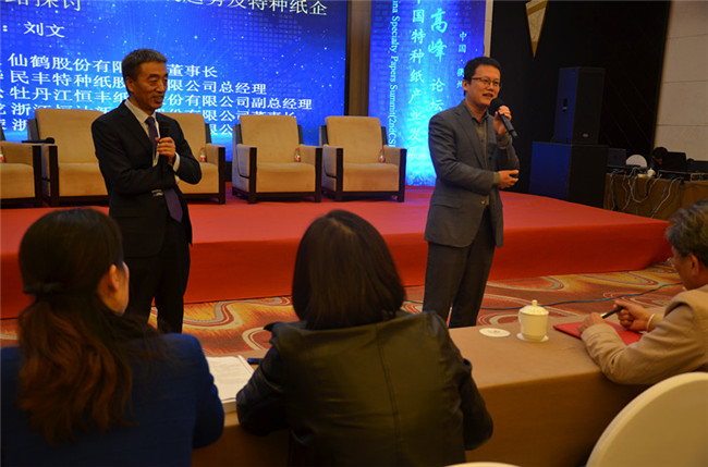 本次高峰圓桌論壇的主題是“中國(guó)特種紙產(chǎn)業(yè)的發(fā)展趨勢(shì)及特種紙企業(yè)的出路探討”,主持人為特紙委秘書長(zhǎng)劉文,邀請(qǐng)的嘉賓有仙鶴股份有限公司董事長(zhǎng)王敏良、民豐特種紙股份有限公司總經(jīng)理曹繼華、牡丹江恒豐紙業(yè)股份有限公司副總經(jīng)理李勁松、浙江恒達(dá)新材料股份有限公司董事長(zhǎng)姜文龍、浙江金昌特種紙股份有限公司董事長(zhǎng)張求榮。各位企業(yè)家從自己企業(yè)特點(diǎn)出發(fā),介紹了各家企業(yè)的發(fā)展戰(zhàn)略,分享了在特種紙出口、質(zhì)量管控、產(chǎn)品創(chuàng)新、企業(yè)管理等方面的成功經(jīng)驗(yàn)。與會(huì)代表針對(duì)企業(yè)家的分享做了提問(wèn)、討論和交流。